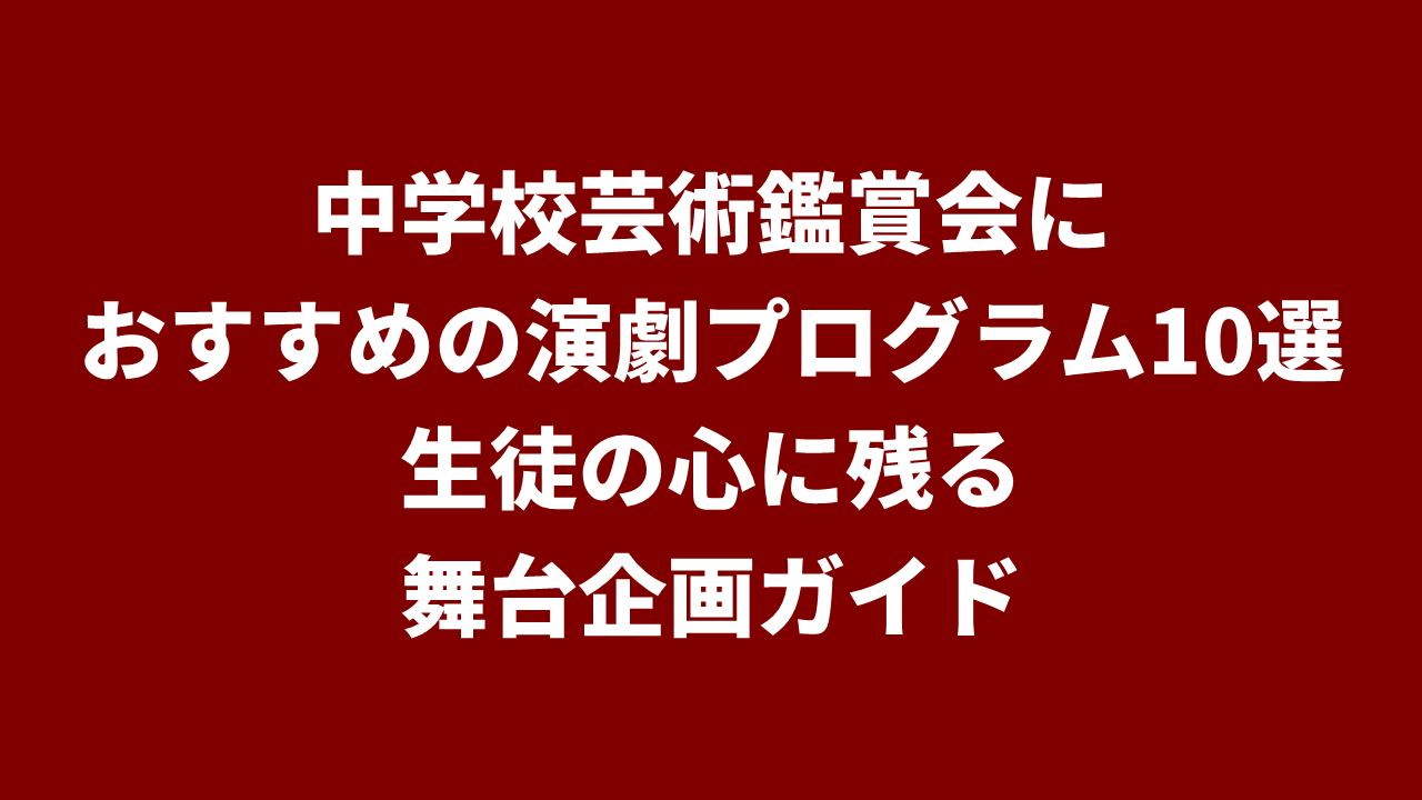 中学校の芸術鑑賞会では、単に楽しいだけの舞台ではなく、生徒の成長につながるテーマ性のある演劇が求められます。