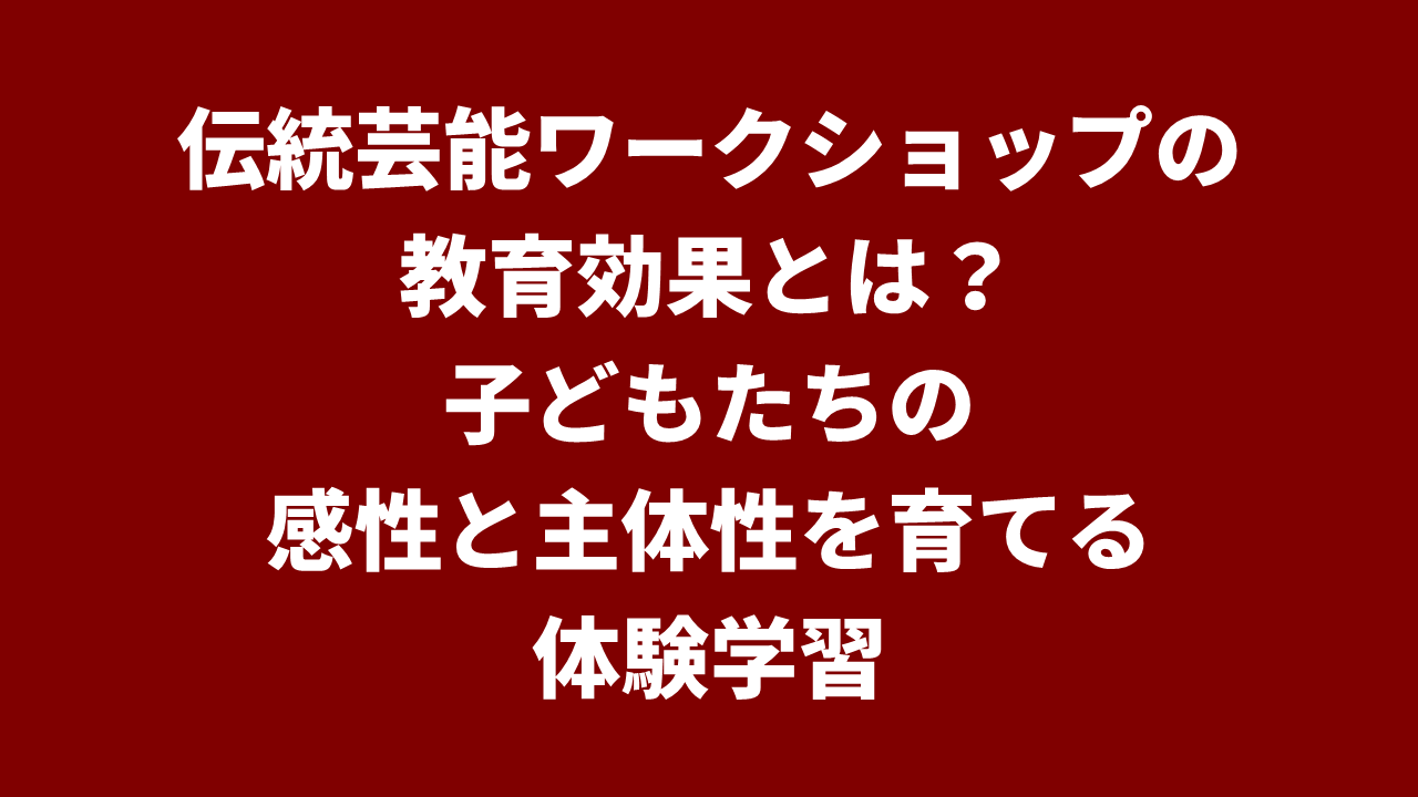 伝統芸能ワークショップの教育効果とは?子どもたちの感性と主体性を育てる体験学習