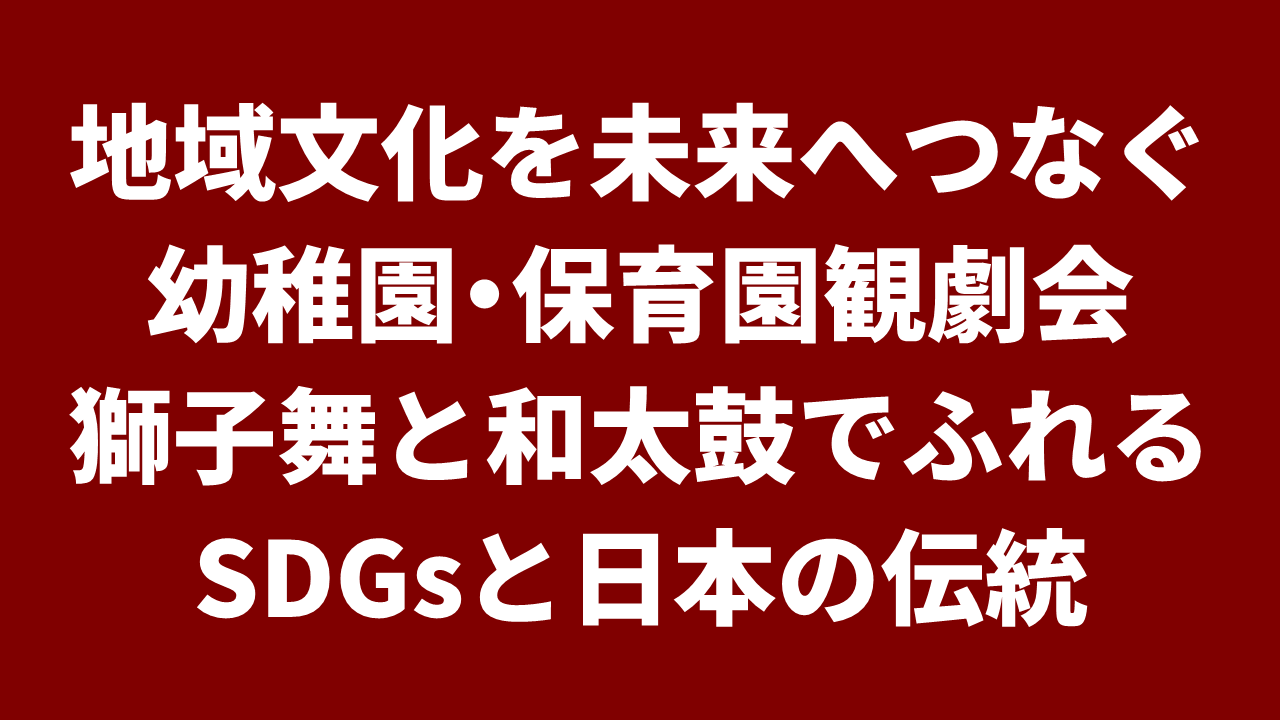 獅子舞や和太鼓の迫力ある舞台を楽しみながら、日本の伝統と地域文化の価値を感じる観劇会。子どもたちの小さな興味や感動が、未来の文化を支える大きな力になっていきます。