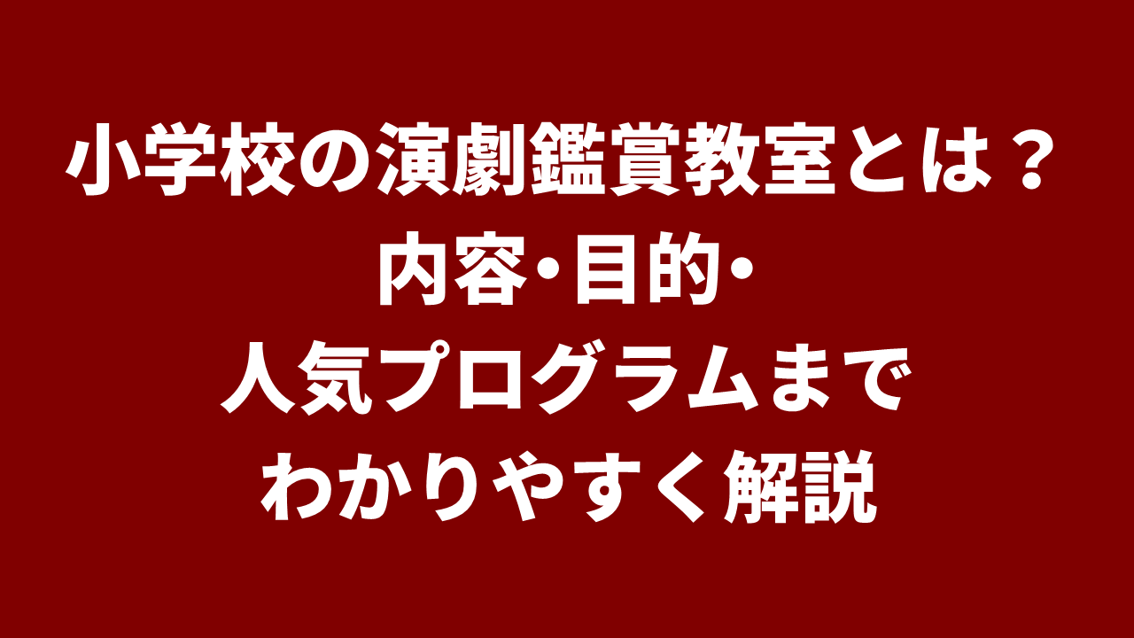小学校の演劇鑑賞教室は、子どもたちが舞台芸術や文化に触れる貴重な学校行事です。演劇や音楽、パフォーマンスなどさまざまな舞台を通して、感性や想像力を育てることができます。