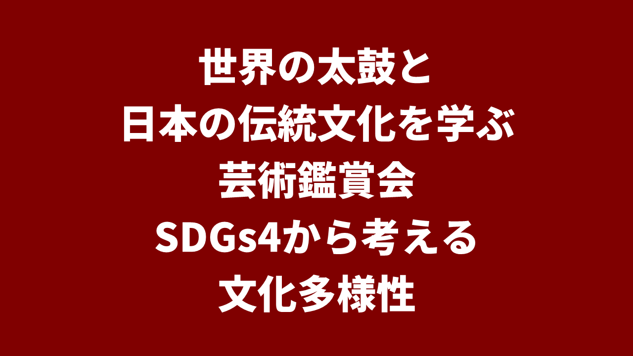 芸術鑑賞会で世界の太鼓文化と日本の和太鼓を並べて紹介することで、文化の違いと共通点の両方を学ぶことができます。