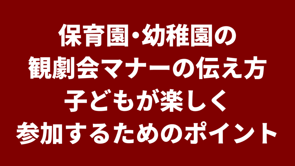 保育園・幼稚園の観劇会マナーの伝え方|子どもが楽しく参加するためのポイント