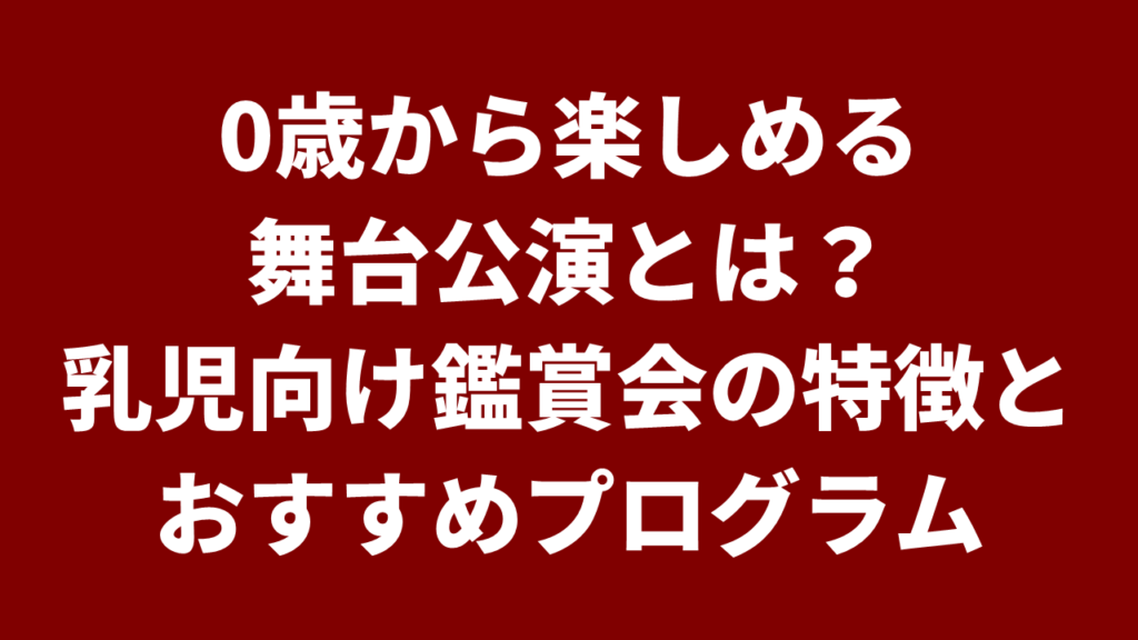 0歳から楽しめる舞台公演とは|乳児向け鑑賞会の特徴とおすすめプログラム