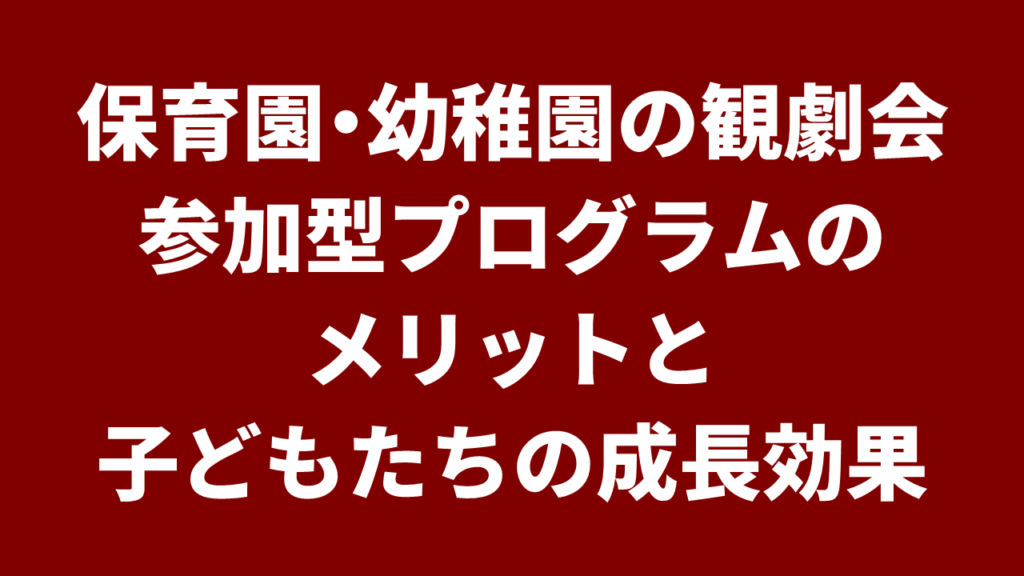 保育園・幼稚園の観劇会|参加型プログラムのメリットと子どもたちの成長効果