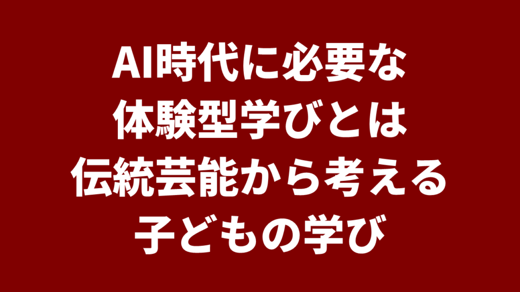 AI時代に必要な体験型学びとは―伝統芸能から考える子どもの学び