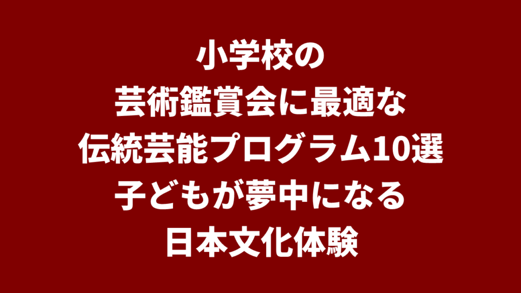 小学校の芸術鑑賞会に最適な伝統芸能プログラム10選|子どもが夢中になる日本文化体験