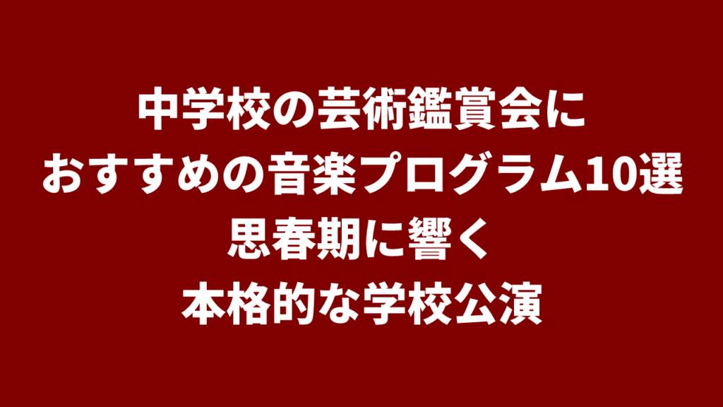 中学校の芸術鑑賞会におすすめの音楽プログラム10選|思春期に響く本格的な学校公演