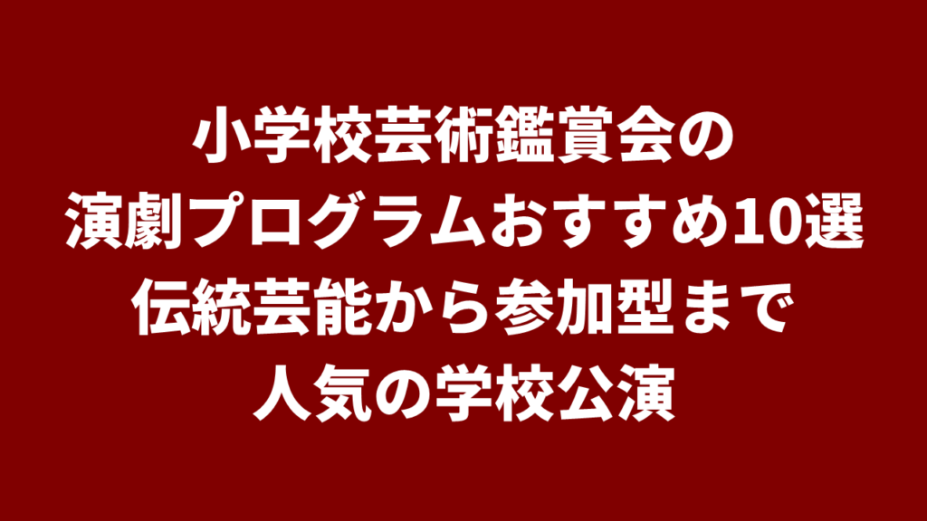 小学校芸術鑑賞会の演劇プログラムおすすめ10選|伝統芸能から参加型まで人気の学校公演