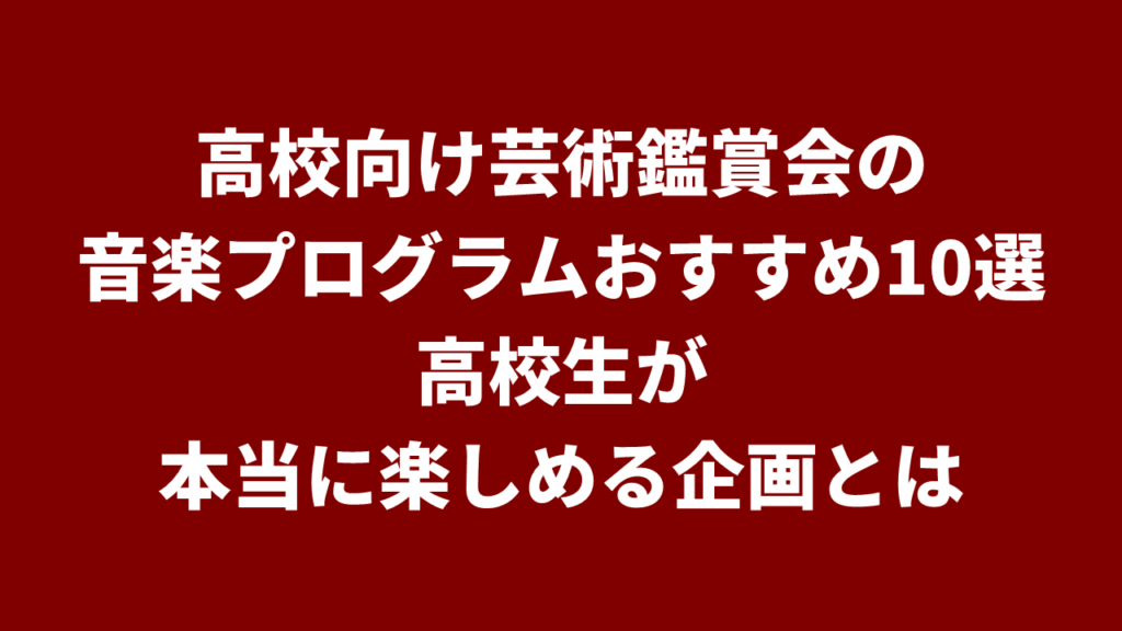 高校向け芸術鑑賞会の音楽プログラムおすすめ10選