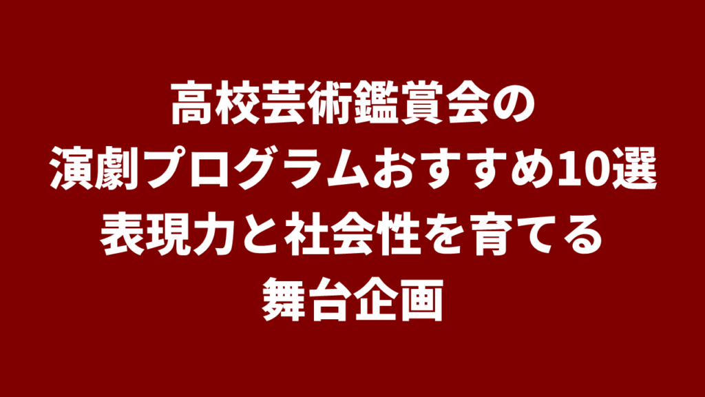 高校芸術鑑賞会の演劇プログラムおすすめ10選|表現力と社会性を育てる舞台企画