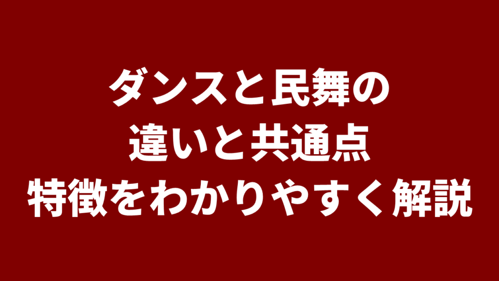 ダンスと民舞の違いと共通点|特徴をわかりやすく解説