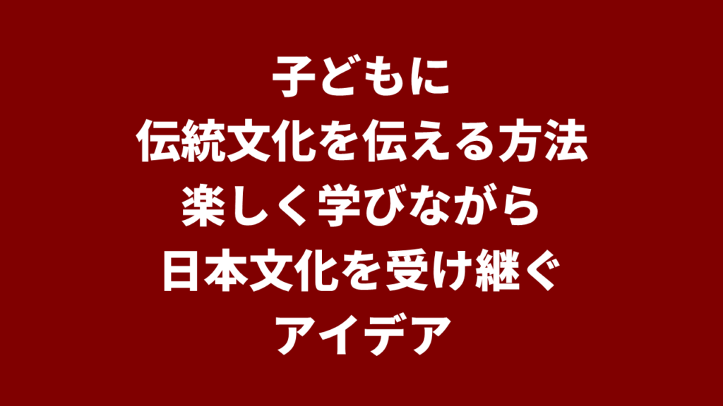 子どもに伝統文化を伝えることの大切さ