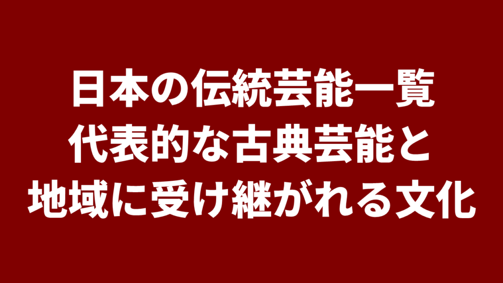 日本の伝統芸能一覧|代表的な古典芸能と地域に受け継がれる文化