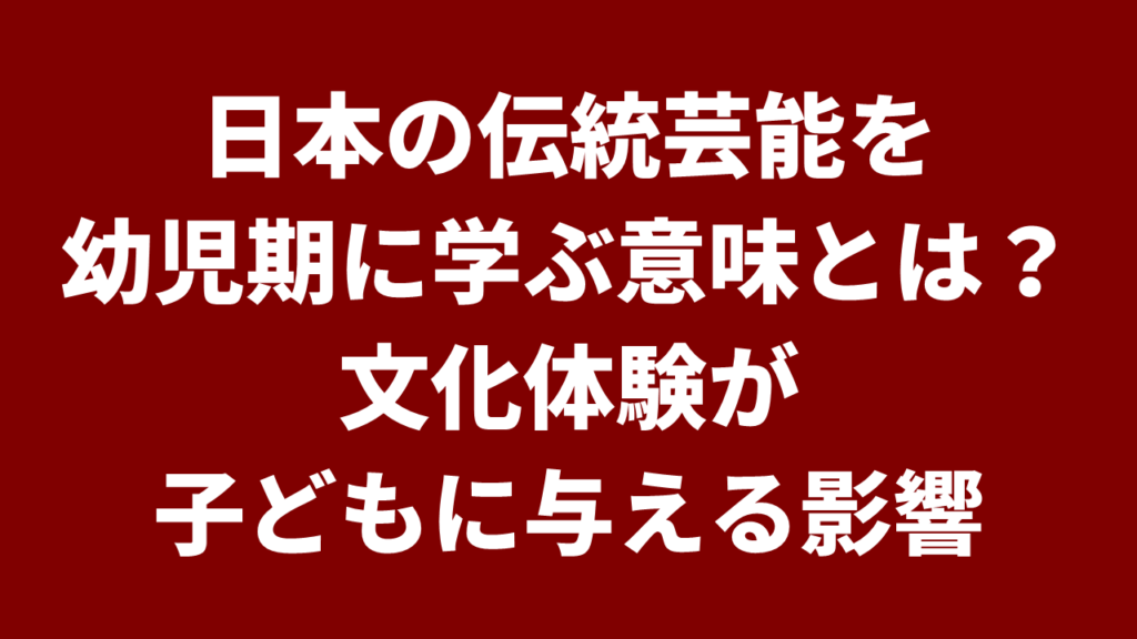 日本の伝統芸能を幼児期に学ぶ意味とは?文化体験が子どもに与える影響
